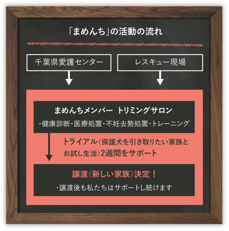 「まめんち」は「千葉県登録愛護団体」ですので、動物愛護センターでの活動もしっかり許可を得ています。